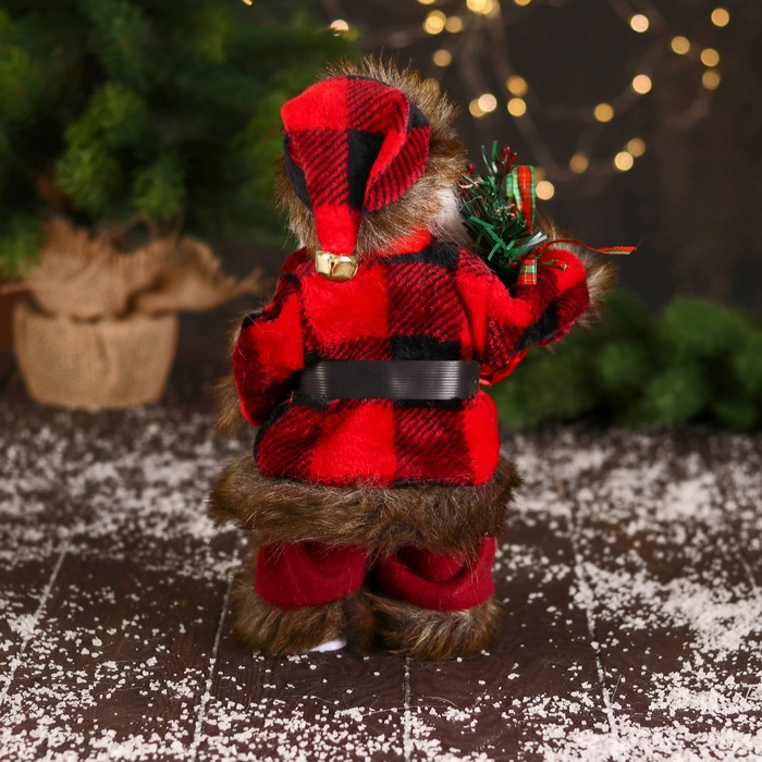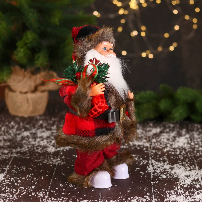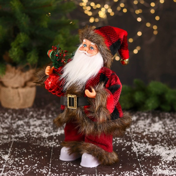 Дед Мороз "В меховом красном костюмчике, с мешком" двигается, 11х30 см