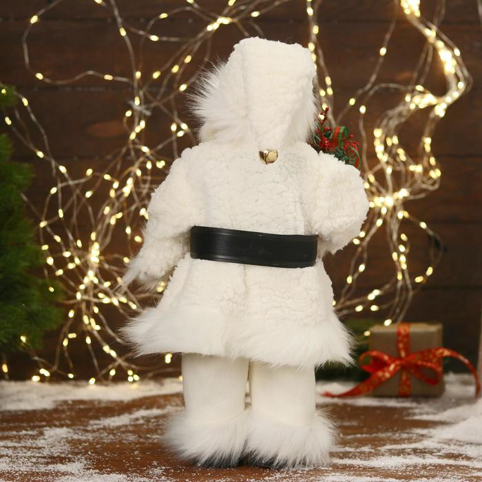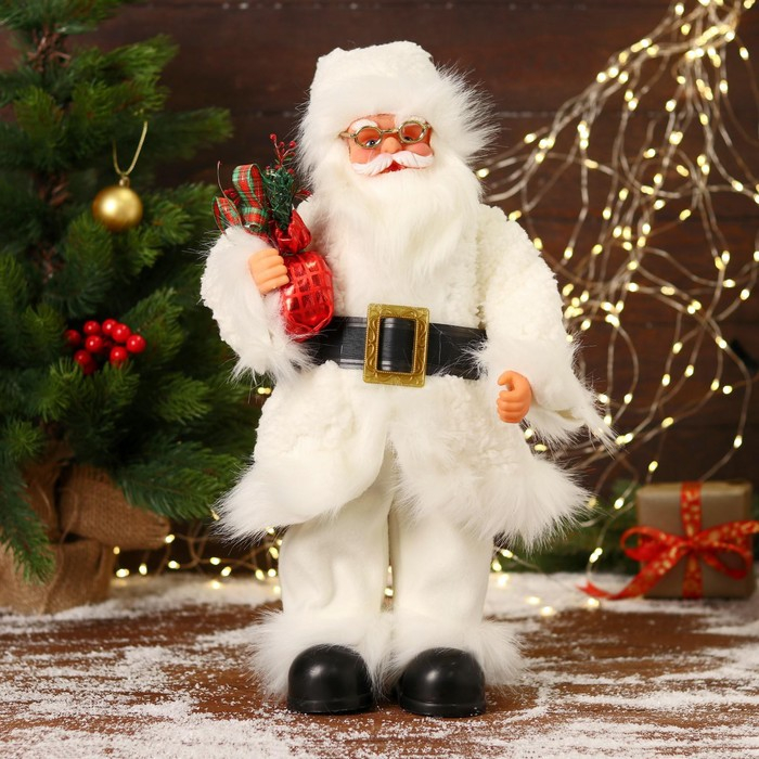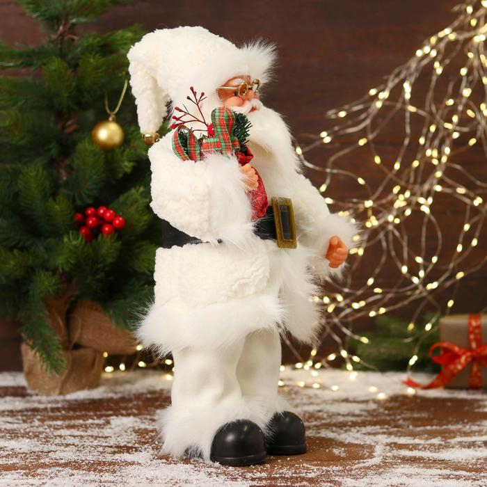 Дед Мороз "В меховом белом костюмчике, с мешком" двигается, 20х40 см