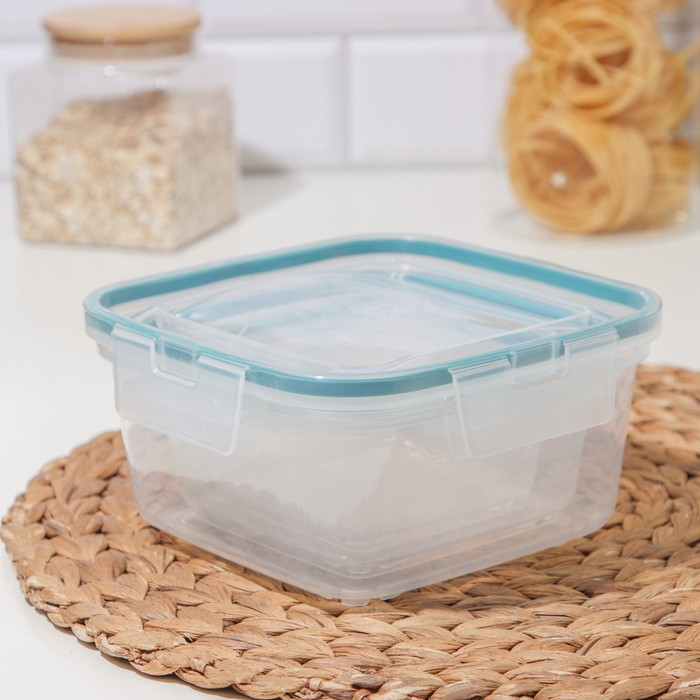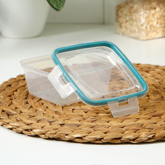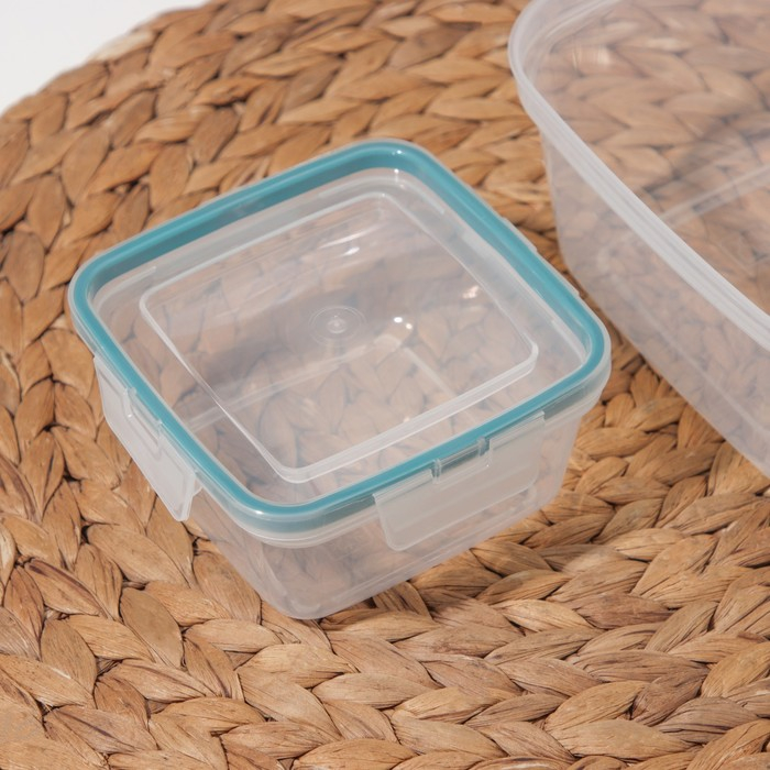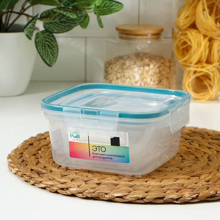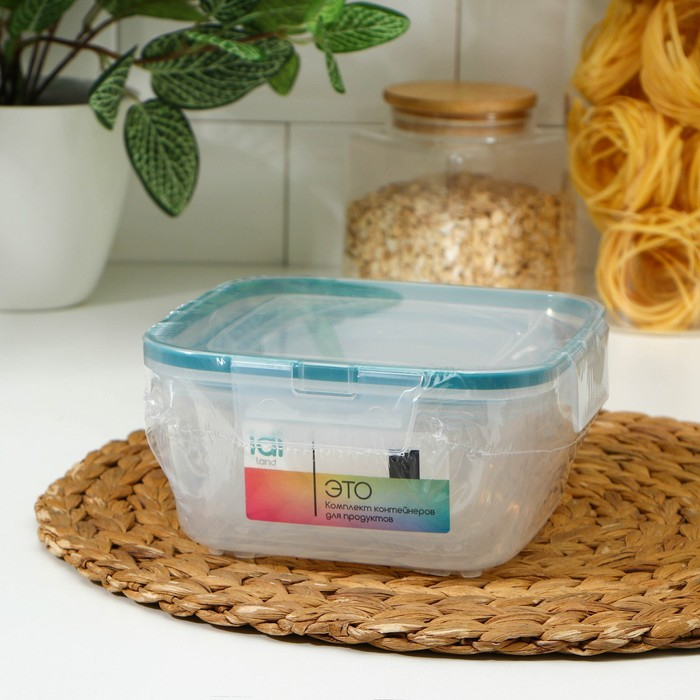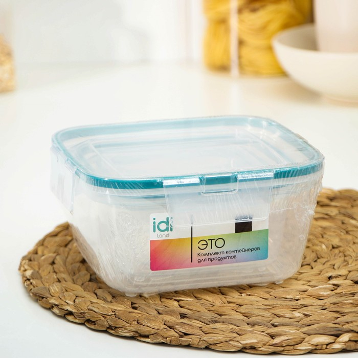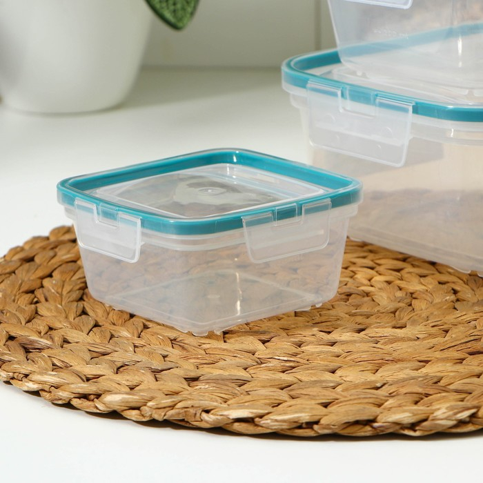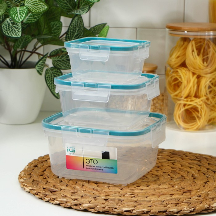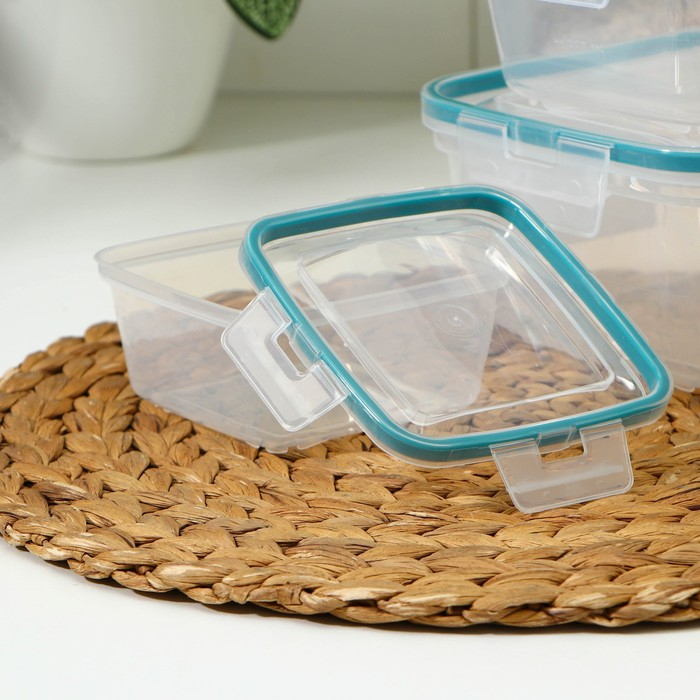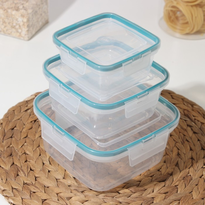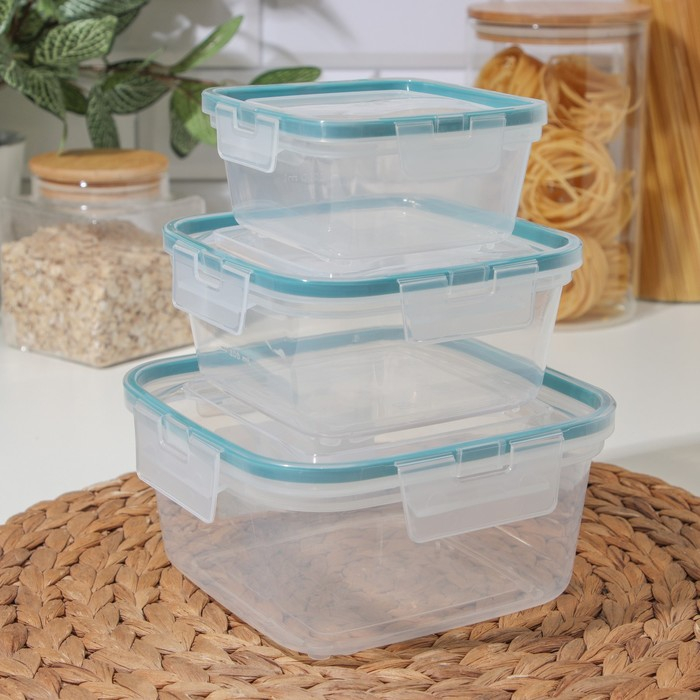 Набор контейнеров для продуктов с защёлкой, герметичная крышка, 3 шт: 400 мл, 800 мл, 1,5 л, прозрачные, крышка голубая