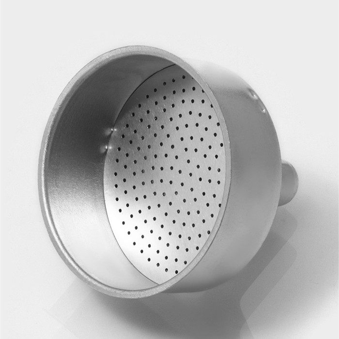 - Вставьте воронку в нижний резервуар, уберите излишки кофе с бортиков, чтобы они не прилипли к уплотнителю, и крепко прикрутите верхнюю часть на место.