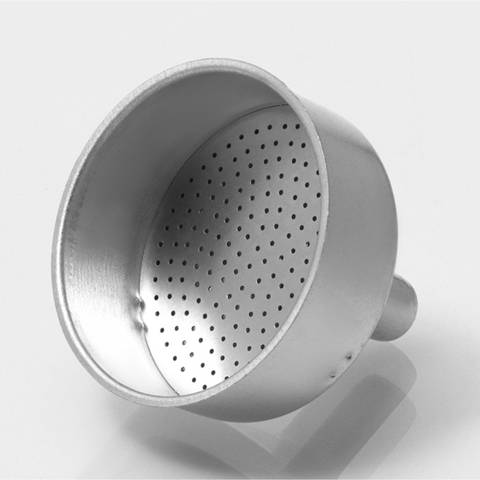 - Вставьте воронку в нижний резервуар, уберите излишки кофе с бортиков, чтобы они не прилипли к уплотнителю, и крепко прикрутите верхнюю часть на место.