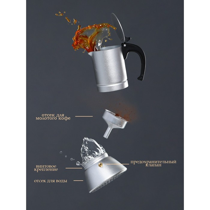 Кофеварка гейзерная Доляна Alum, на 3 чашки, 150 мл