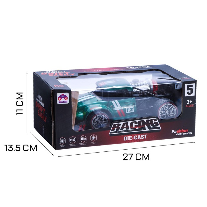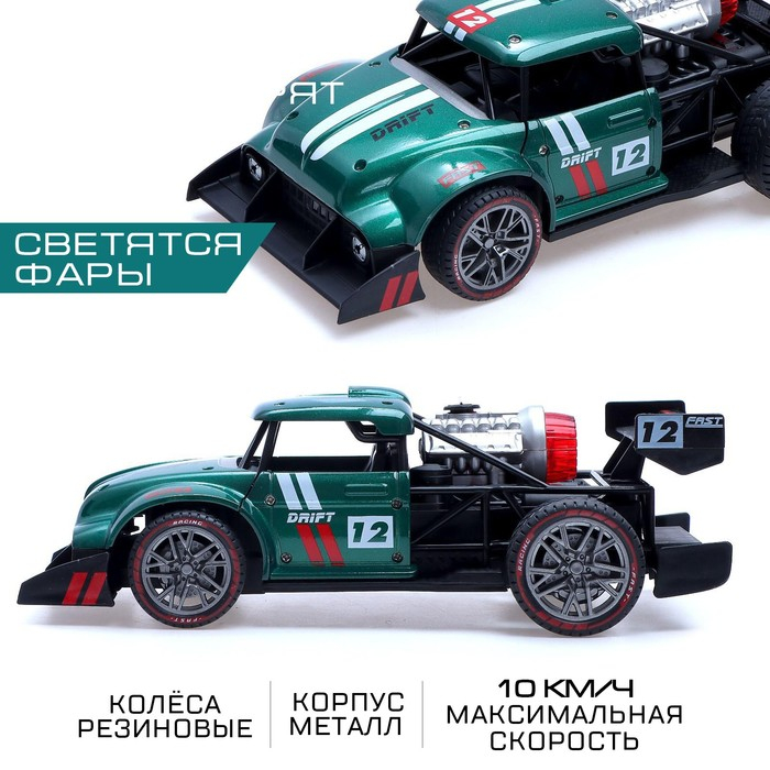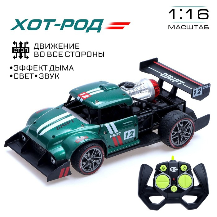 Машина радиоуправляемая «Хот-род», эффект дыма, свет и звук, работает от аккумулятора, цвет зелёный