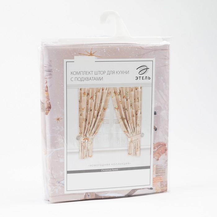 Новогодний комплект штор для кухни с подхватами "Christmas forest" 145х180см-2 шт, габардин