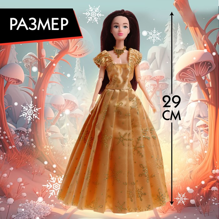 Кукла-модель шарнирная «Снежная принцесса», с аксессуаром, золотое платье