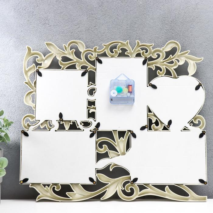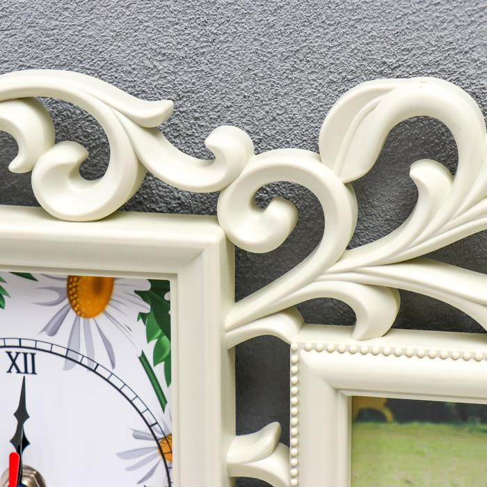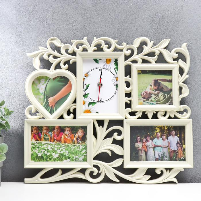 Фоторамка с часами "Счастье" 4 фото, слоновая кость