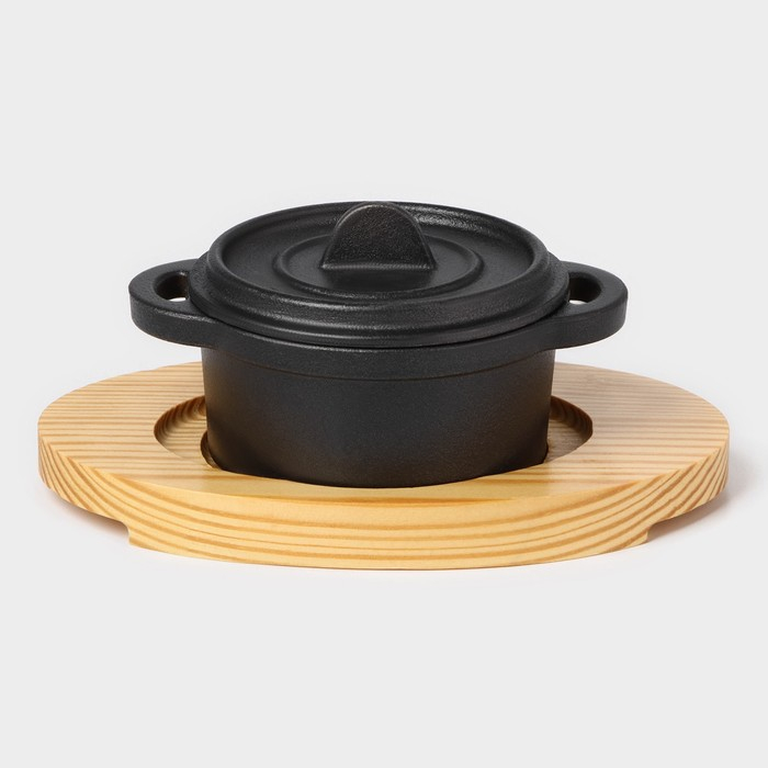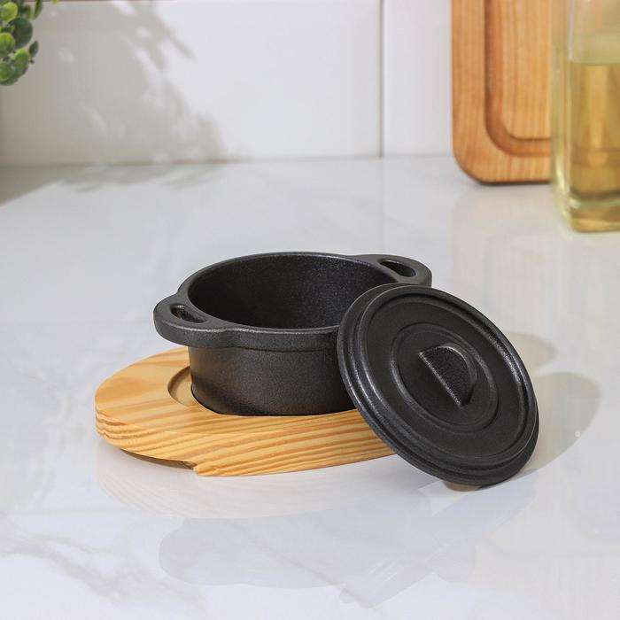 Кастрюля чугунная на подставке Volcano, 13×10×7,5 см, цвет чёрный