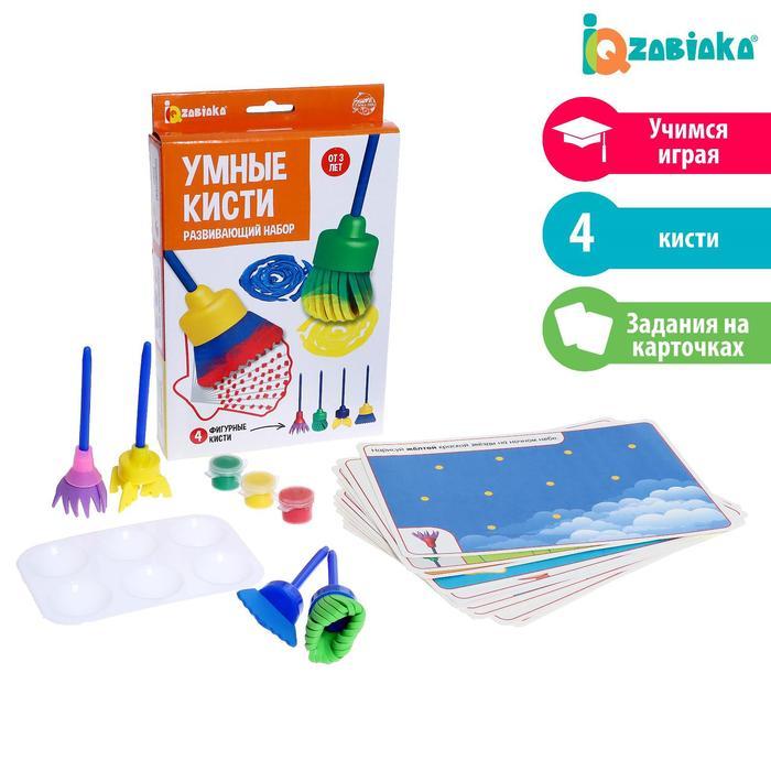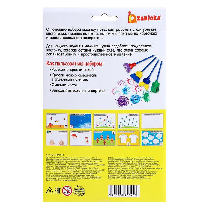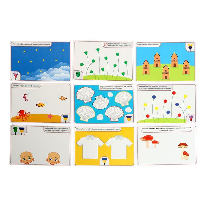 С помощью набора малышу предстоит работать с фигурными кисточками, смешивать цвета, выполнять задания на карточках и просто весело фантазировать.