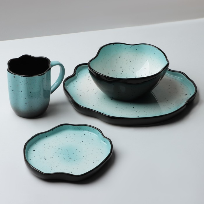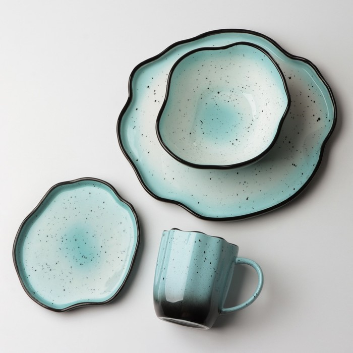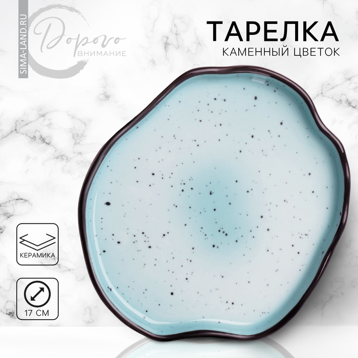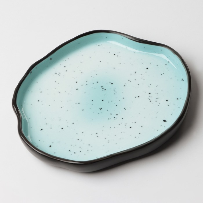 Тарелка керамическая неровный край «Синяя», 17 см, цвет синий