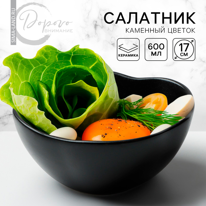 Салатник керамический неровный край «Чёрная», 600 мл, 17 см, цвет чёрный