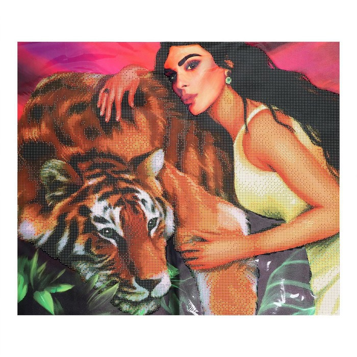 Алмазная мозаика с частичным заполнением на холсте «Девушка с тигром», 50 x 60 см