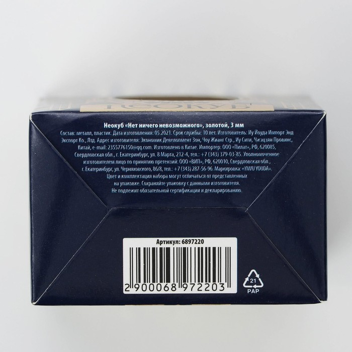 Неокуб «Нет ничего невозможного», 3 мм, золотой