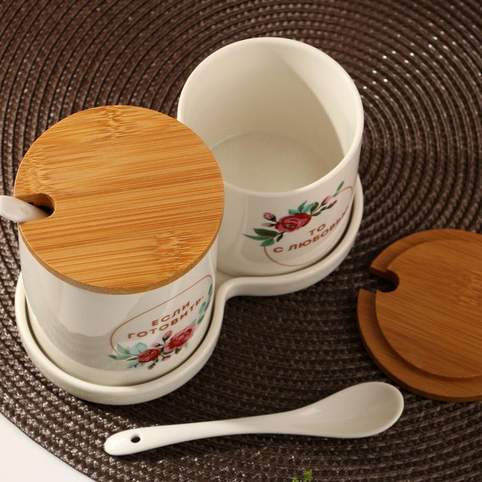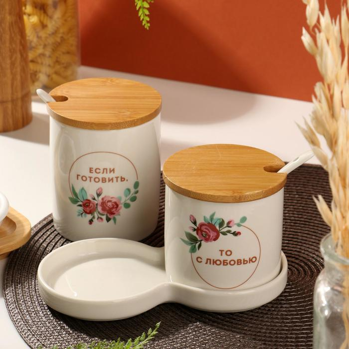 Набор банок для хранения из керамики «Готовить с любовью», 400 мл, 250 мл, 2 шт, цвет белый