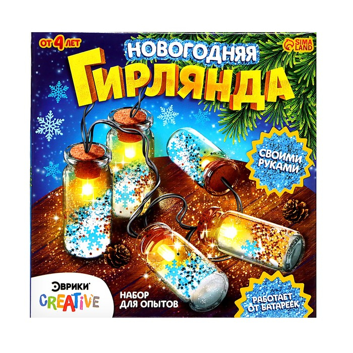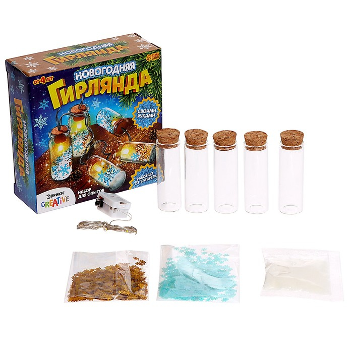 Набор для опытов «Новогодняя гирлянда», снежинки и снег