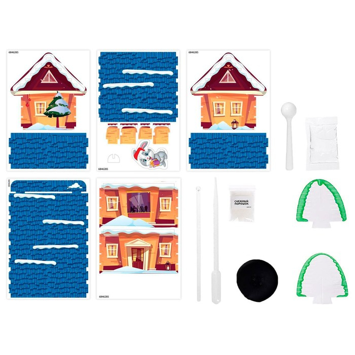 Удивительный опыт позволит создать настоящий снег. Им можно украсить фигурку и вырастить кристаллы из «Морозного порошка». Для сборки игрушки не требуется клей.