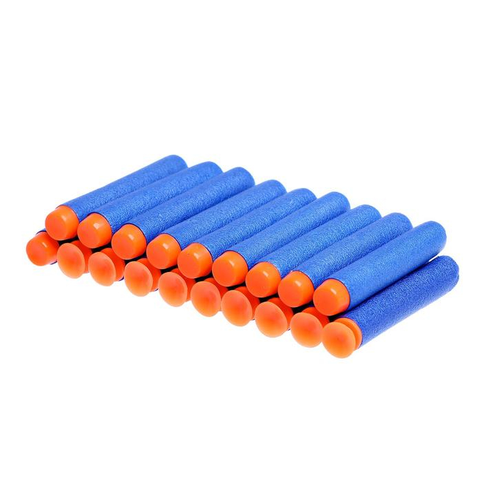 - В наборе 20 патронов: 10 мягких пуль и 10 пуль на присоске.