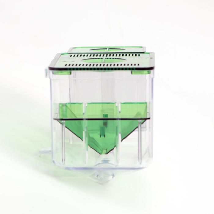 Отсадник предназначен для разведения мальков в аквариуме. Инкубатор позволяет разграничить пространство для предотвращения поедания мальков взрослыми рыбами, дает возможность изолировать неокрепшую рыбу, тем самым создавая безопасную среду. Размещается внутри аквариума чуть выше уровня воды при помощи крючков, которые Вы сможете регулировать самостоятельно. Крышка защищает рыбу от выпрыгивания. Удобен в использовании, так как прорези в коробке способствуют циркуляции воды. Это позволяет не следить за количеством воды в инкубаторе.