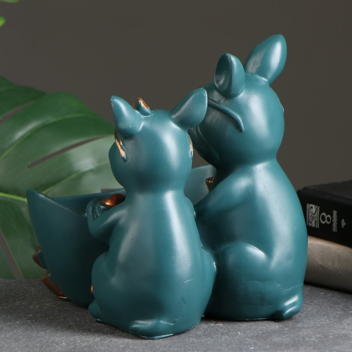 Подставка конфетница "Два бульдога" зеленая, 21х19х19см