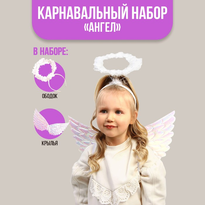 Карнавальный набор «Ангел» позволит создать изящный и нежный образ. Аксессуары в наборе помогут дополнить костюм вашего малыша для праздничного мероприятия.
