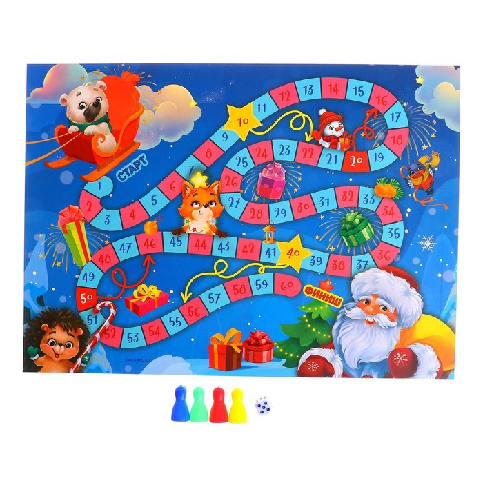Играйте в настольную игру, раскрашивайте картинки, вырезайте снежинки, и это ещё не всё! Скорее открывайте коробку и наслаждайтесь творчеством.