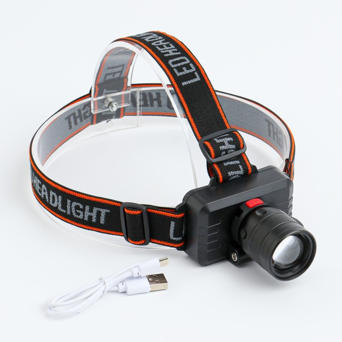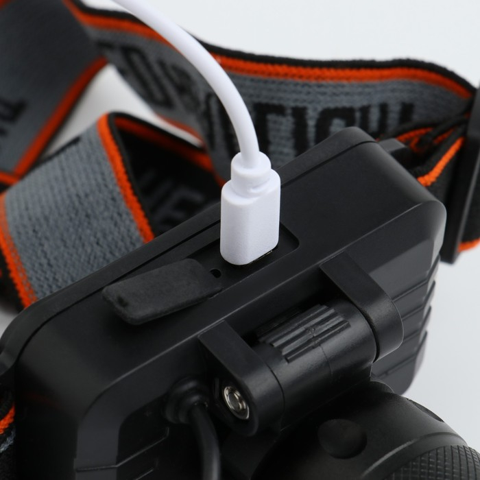 Фонарь налобный аккумуляторный, 10 Вт, 1000 мАч, 200 лм, LED, IPX3