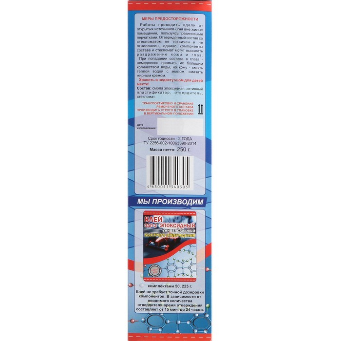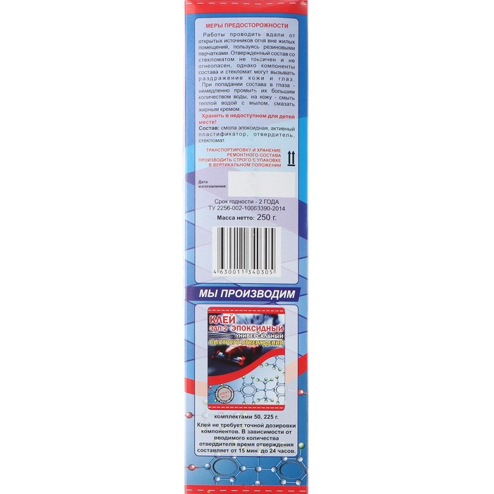 Клей эпоксидный ЭДП двухкомпонентный, быстрого отверждения, 250 г
