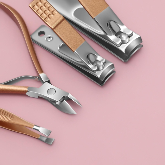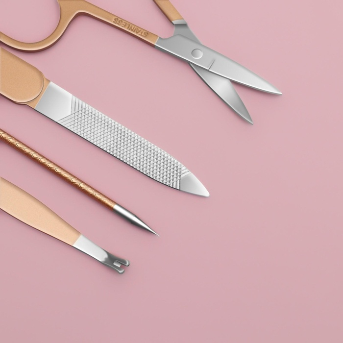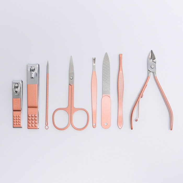 Набор маникюрный, 8 предметов, в футляре, цвет бежевый/розовое золото