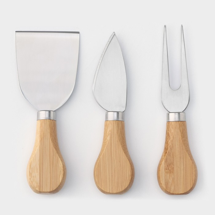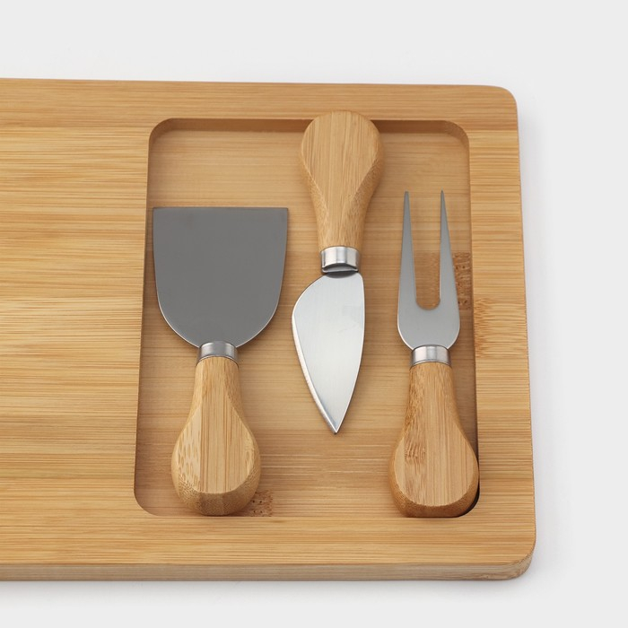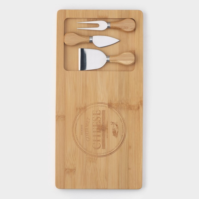 Набор для подачи сыра Доляна Cheese, 3 ножа, доска 38×18,5 см, бамбук