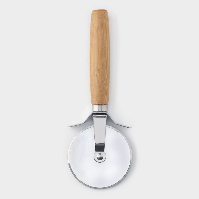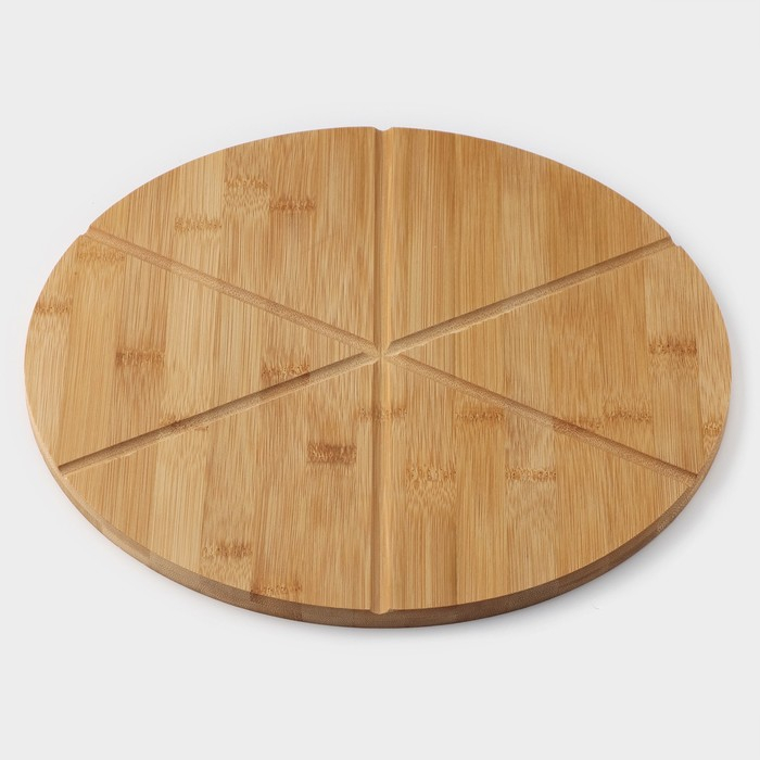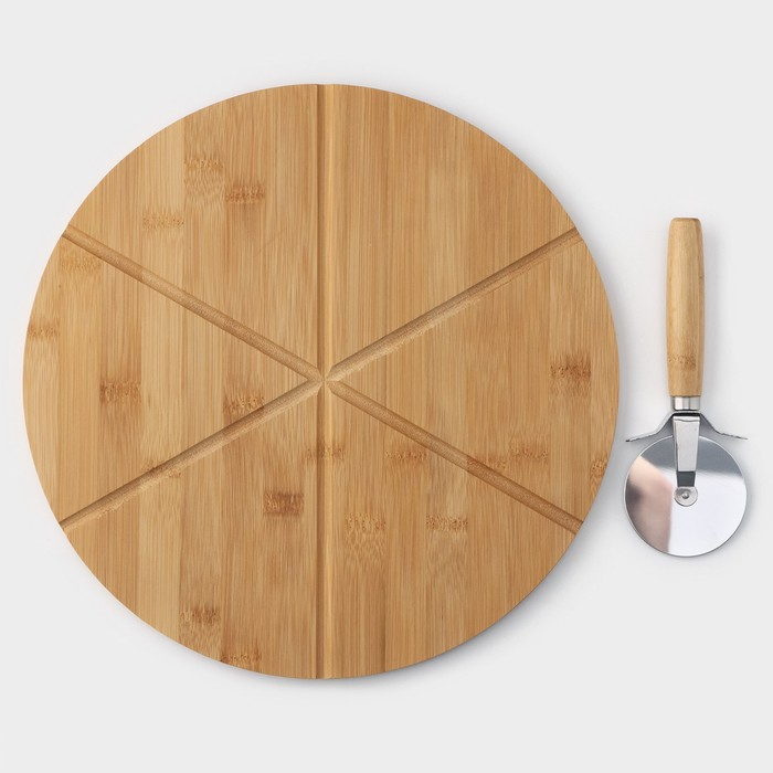 Доска для подачи пиццы Доляна, d=32 см, в комплекте с ножом, бамбук, нержавеющая сталь