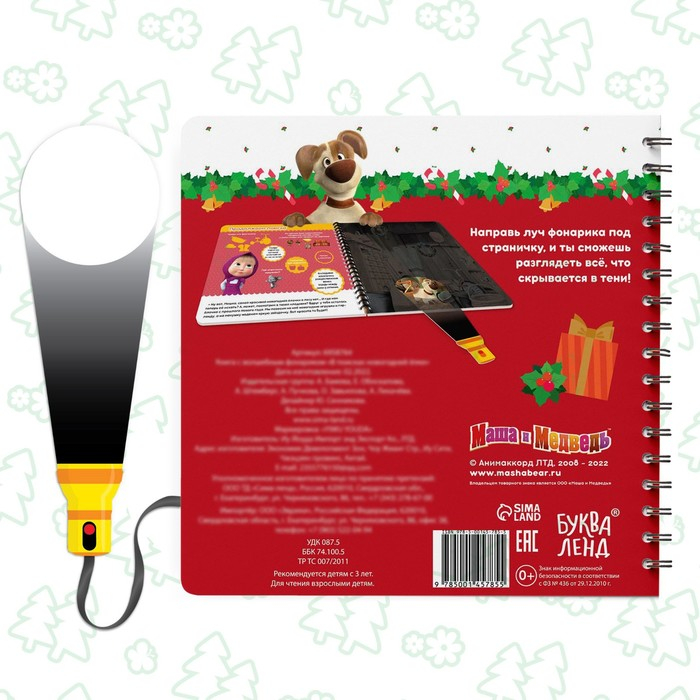 Книга с волшебным фонариком «В поисках новогодней ёлки», 22 стр., 19 × 19 см, Маша и Медведь