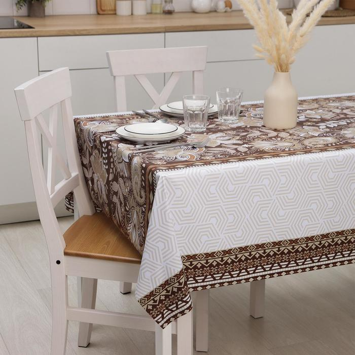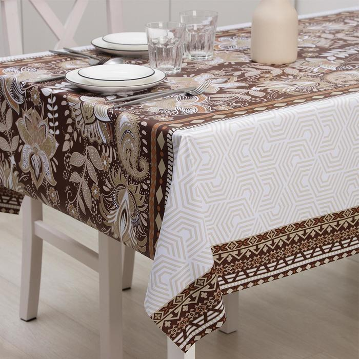 Клеёнка на стол «Русская», на тканевой основе, рулон 20 метров, ширина 137 см, толщина 0,25 мм, цвет коричневый