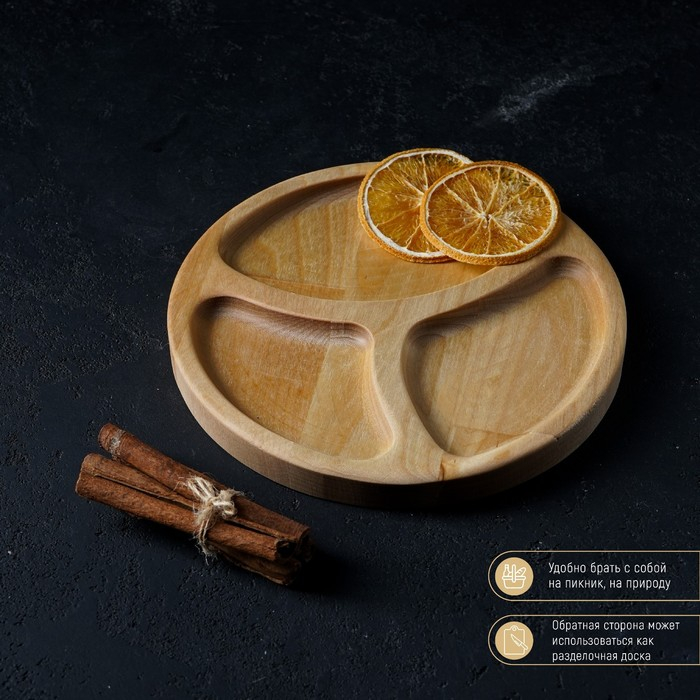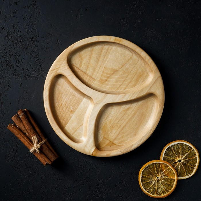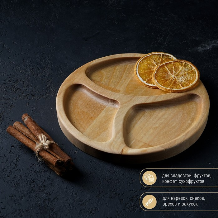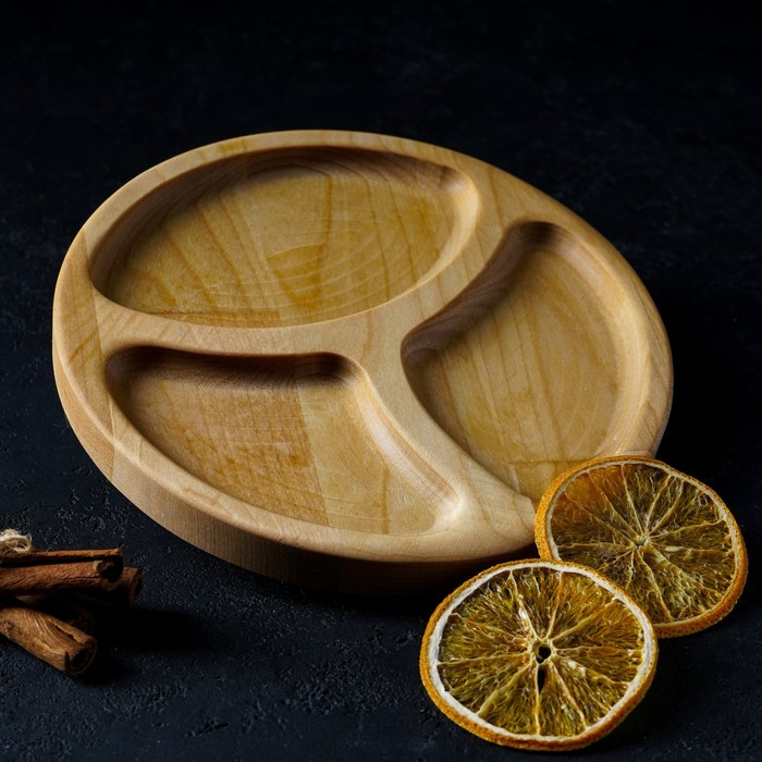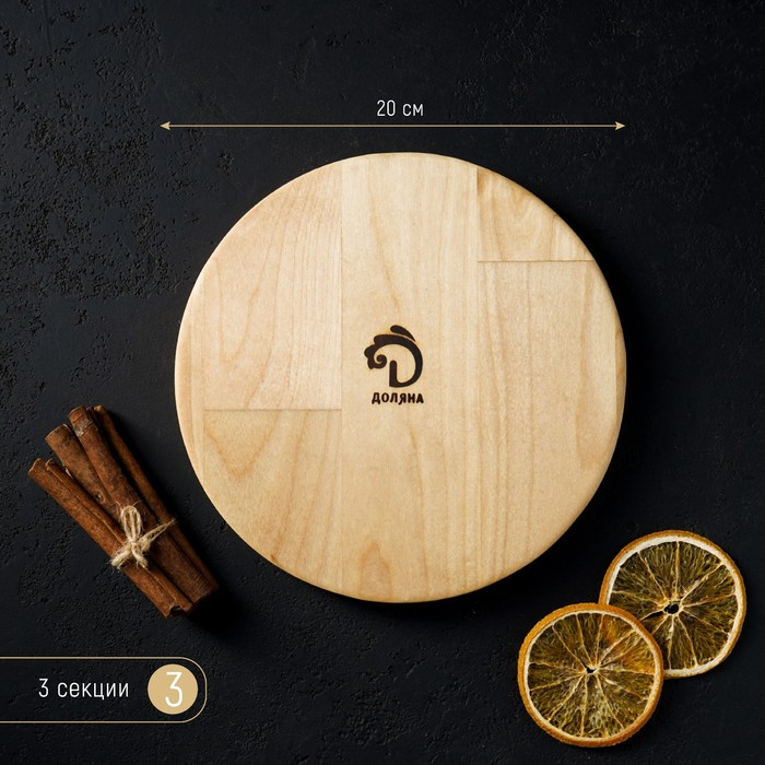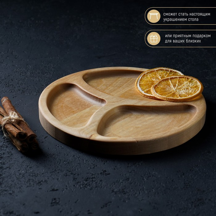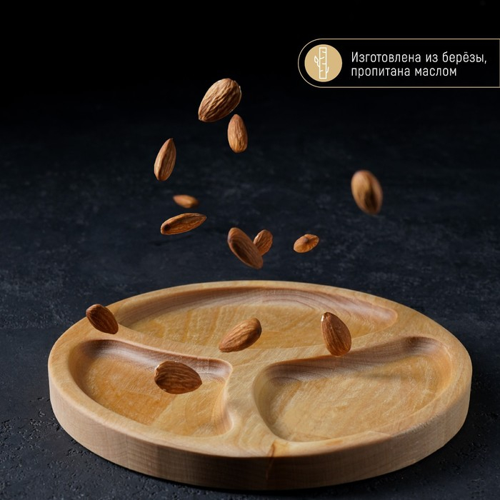 Менажница круглая Доляна «Валенсия», d=20 см, 3 секции, берёза, пропитана маслом