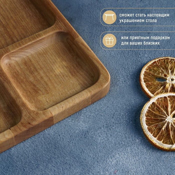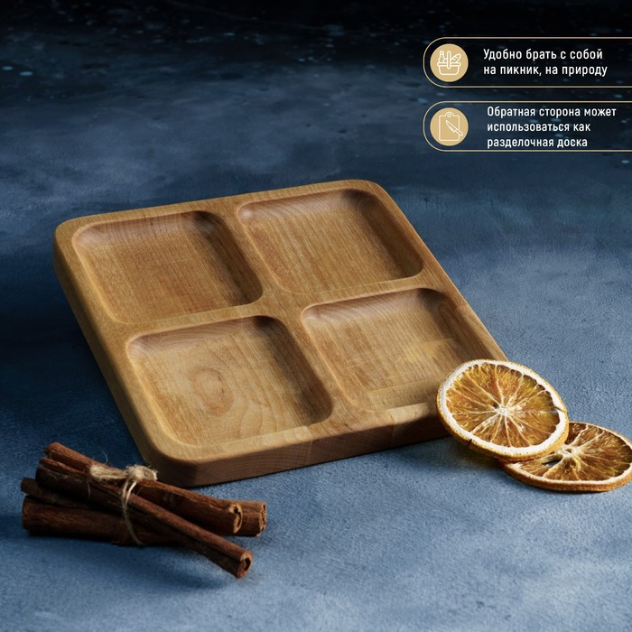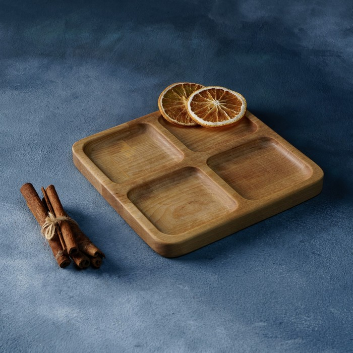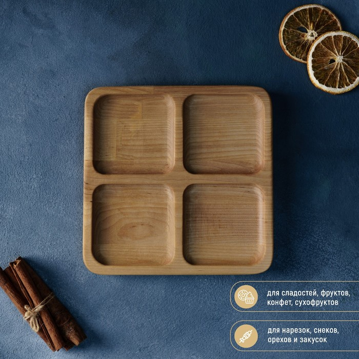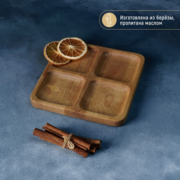 Менажница квадратная Доляна «Комо», 18×18×1,8 см, 4 секции, берёза, пропитана маслом