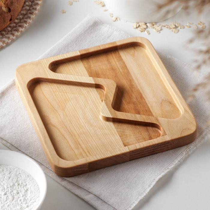 Менажница квадратная Доляна «Авеллино», 18×18×1,8 см см, 2 секции, берёза, пропитана маслом
