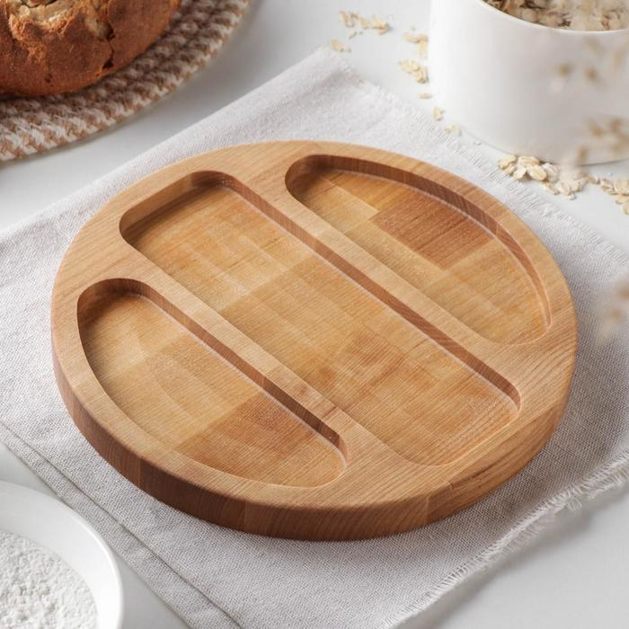 Менажница круглая Доляна «Бари», d=20 см, 3 секции, берёза, пропитана маслом