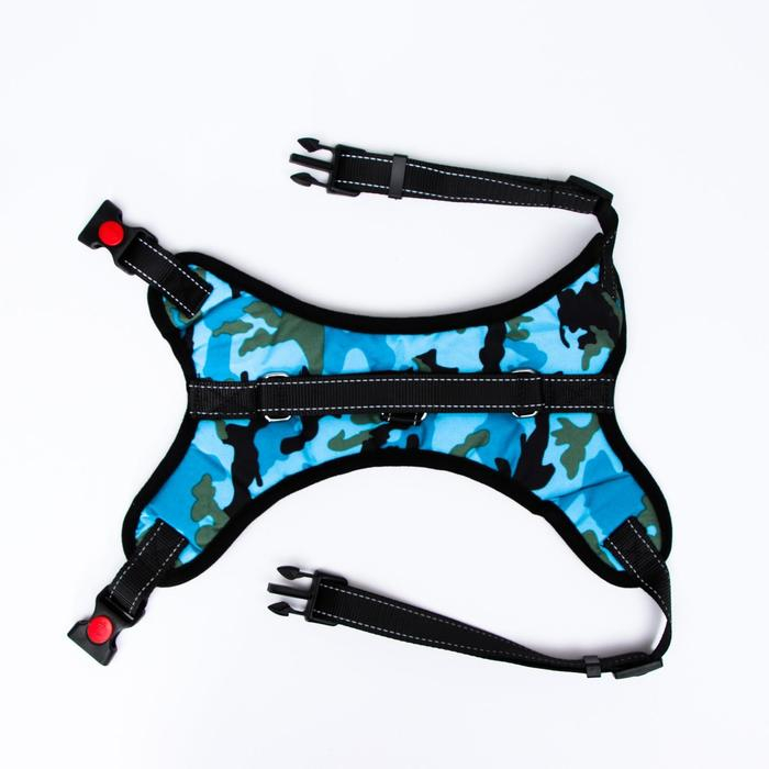 Шлейка К7 мягкая светоотражающая, размер XL, ОГ 74-92 см, вес 28-47,5 кг, голубая хаки