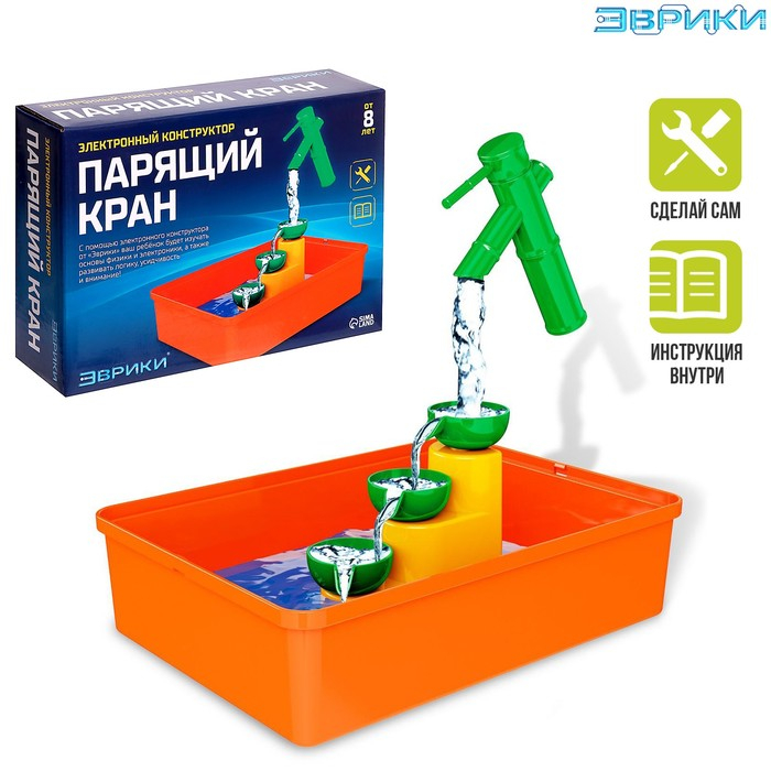 С этим набором ребёнок будет экспериментировать и создавать электрические устройства самостоятельно. Конструктор «Эврики» предназначен для сборки различных простых электронных схем. Соединение элементов между собой производится с помощью специальных кнопочных креплений — это удобно, легко и быстро. Собранные схемы не требуют настройки и работают сразу.