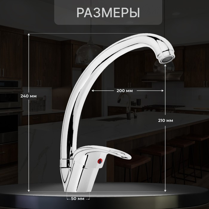 Смеситель для кухни ZEIN Z3104, однорычажный, высокий излив, хром