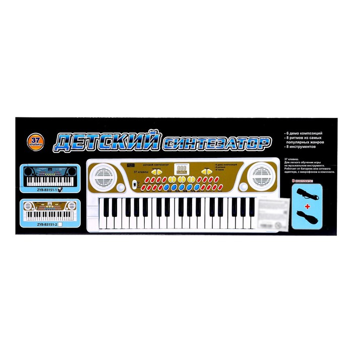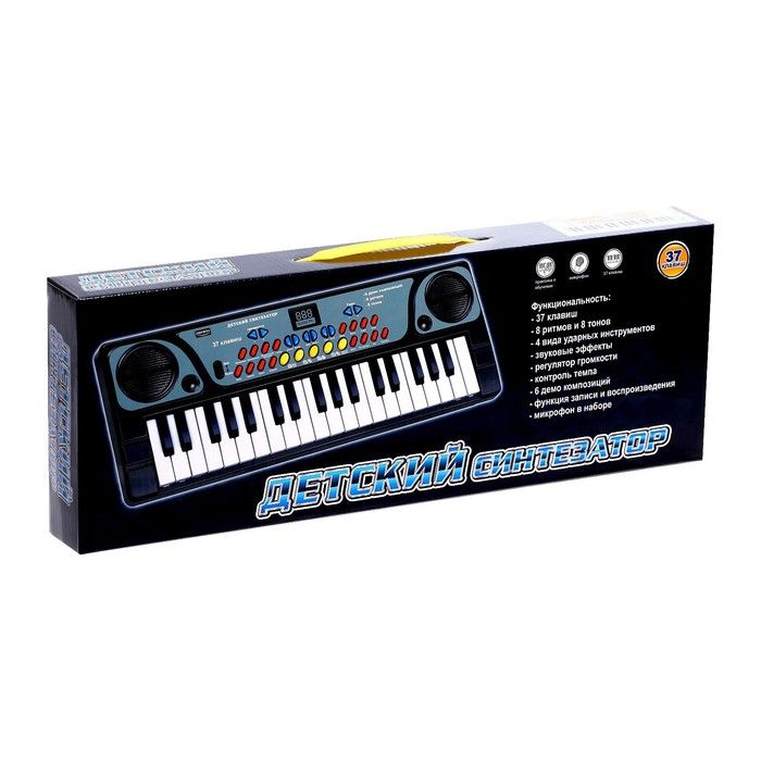 Синтезатор «Детский», 37 клавиш, с микрофоном, цвет чёрный