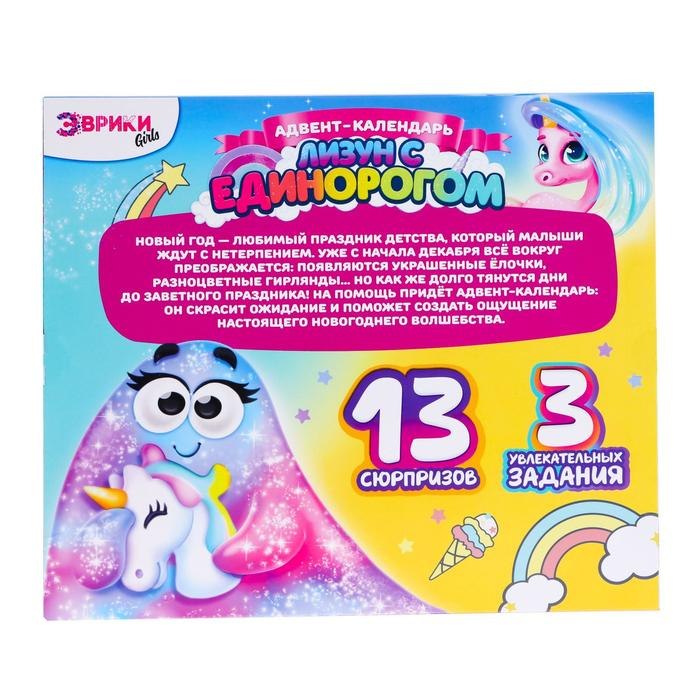 Адвент-календарь на 13 дней «Лизун с единорогом», 13 сюрпризов, 3 задания