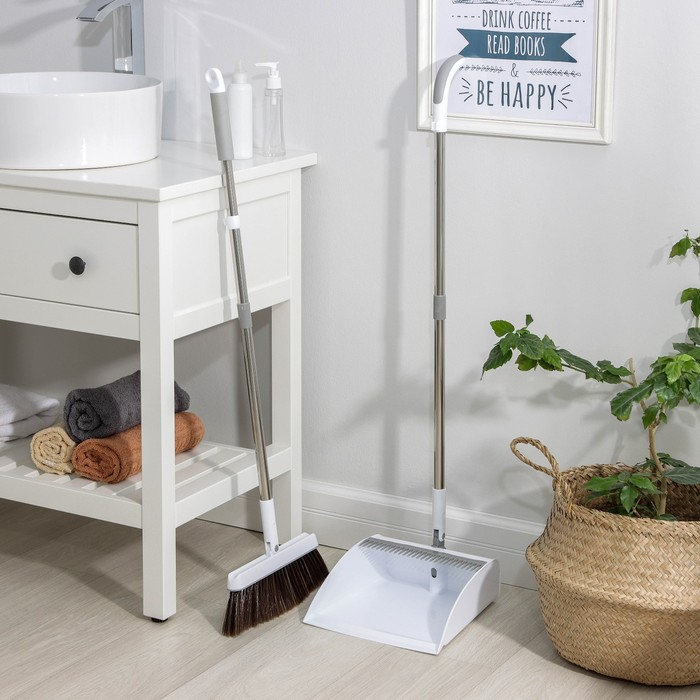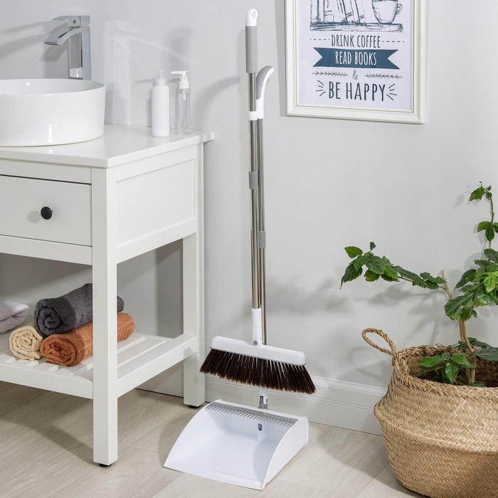 - Стильный дизайн: белый цвет щётки и совка отлично впишется в любой интерьер.