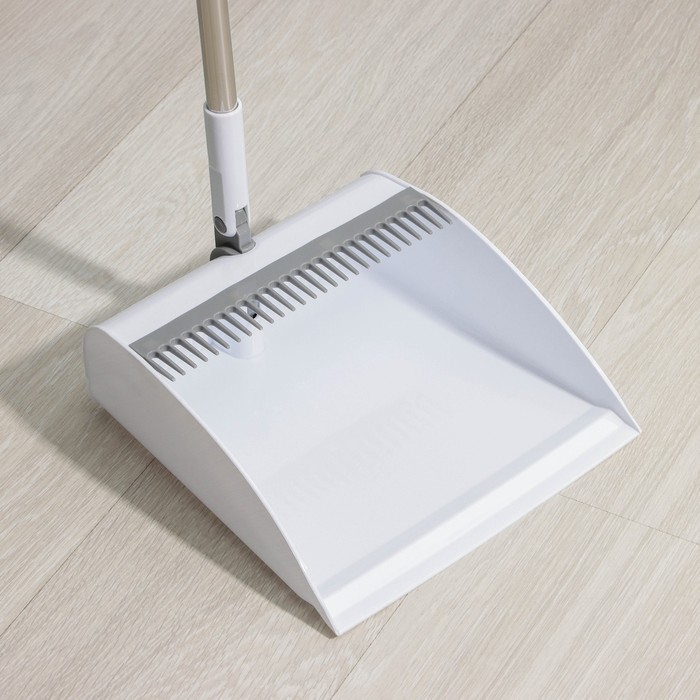 Веник с совком «Ленивка», 19,5×25×90 см, цвет бежевый
