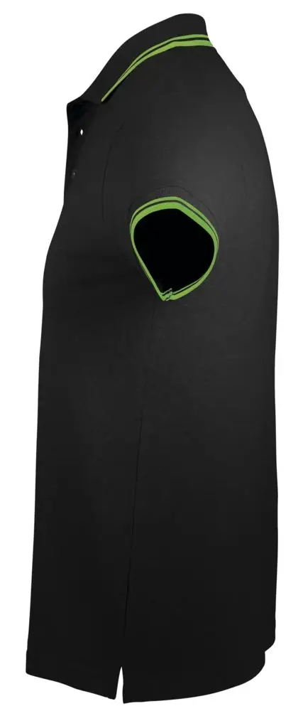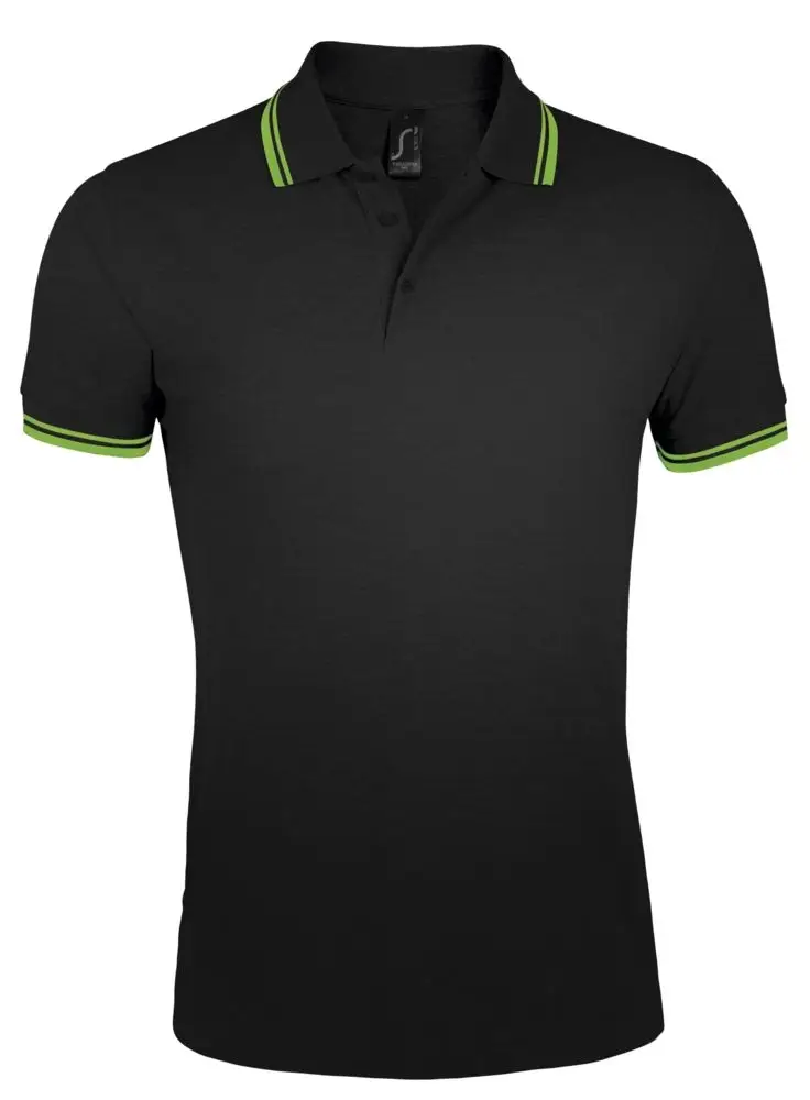 Рубашка поло мужская Pasadena Men 200 с контрастной отделкой, черный/зеленый, размер XXL