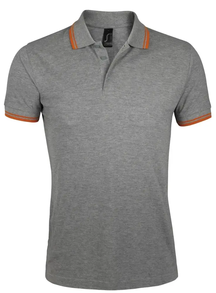 Рубашка поло мужская Pasadena Men 200 с контрастной отделкой, серый меланж/оранжевый, размер XL