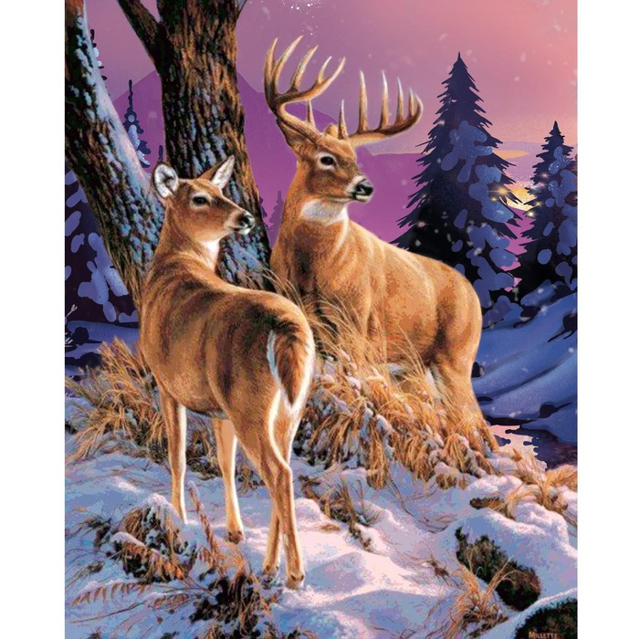 Алмазная мозаика на новый год с полным заполнением на холсте «Олени», 40 х 50 см, новогодний набор для творчества