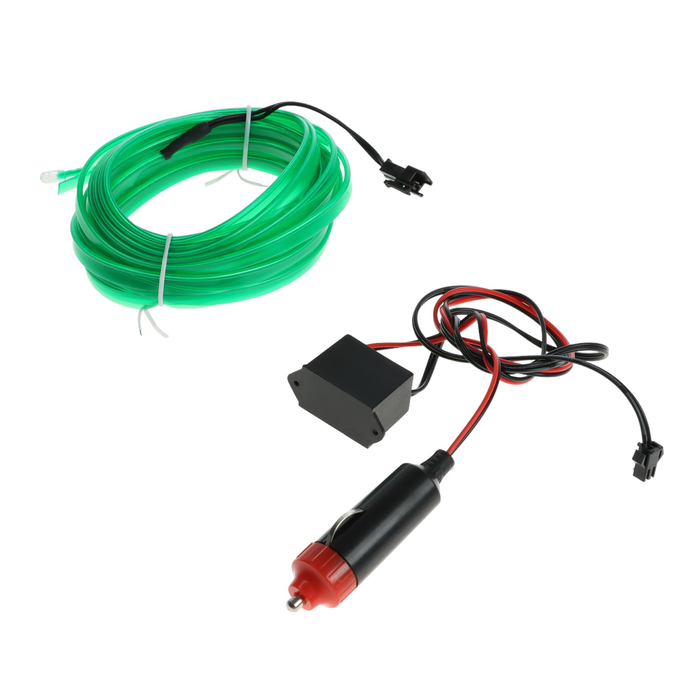 Неоновая нить Cartage для подсветки салона, адаптер питания 12 В, 5 м, зеленый