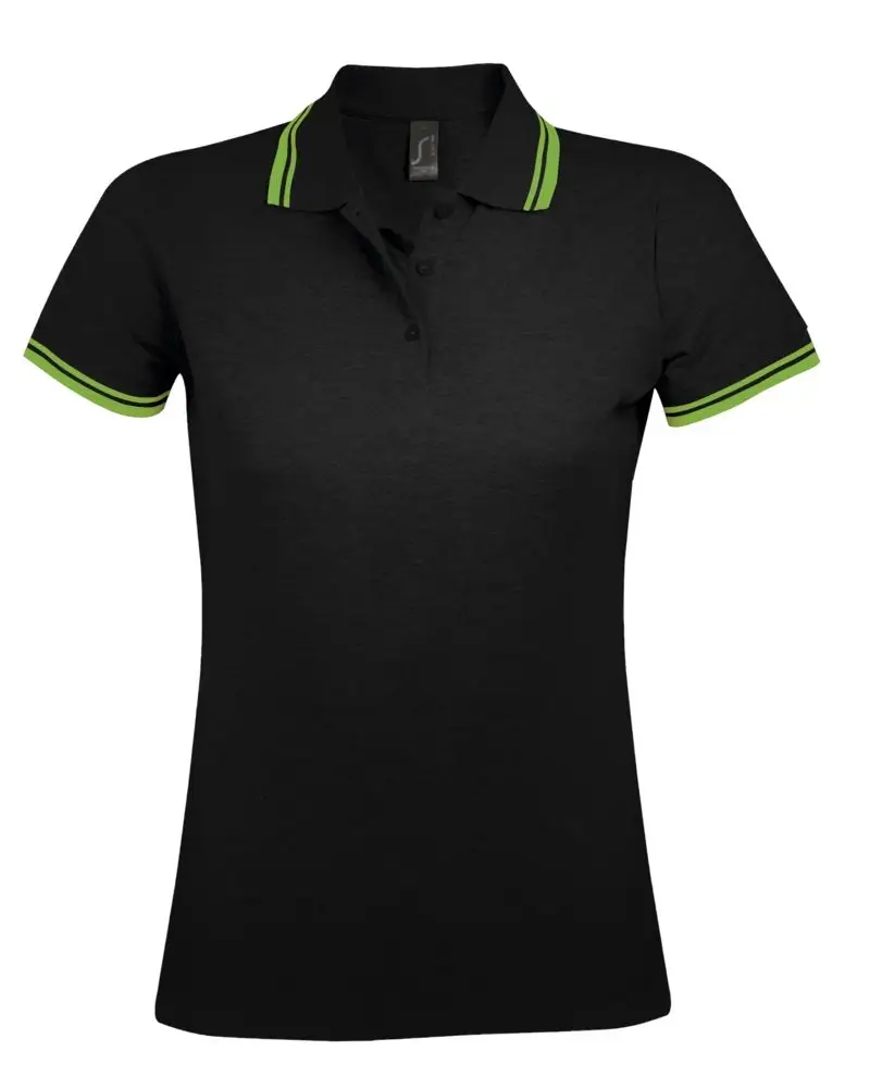 Рубашка поло женская Pasadena Women 200 с контрастной отделкой, черный/зеленый, размер XL
