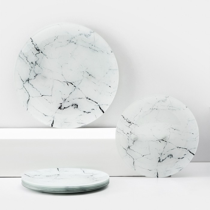 Набор столовый Доляна «Мрамор», 7 предметов: тарелка d=30 см - 1 шт, d=21,5 см - 6 шт, цвет белый