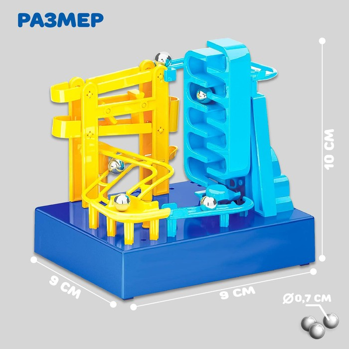 Множество дорожек, туннелей и мостиков завладеют вниманием детей и взрослых. Чадо с удовольствием будет запускать металлические шарики, наблюдая законы физики в действии.