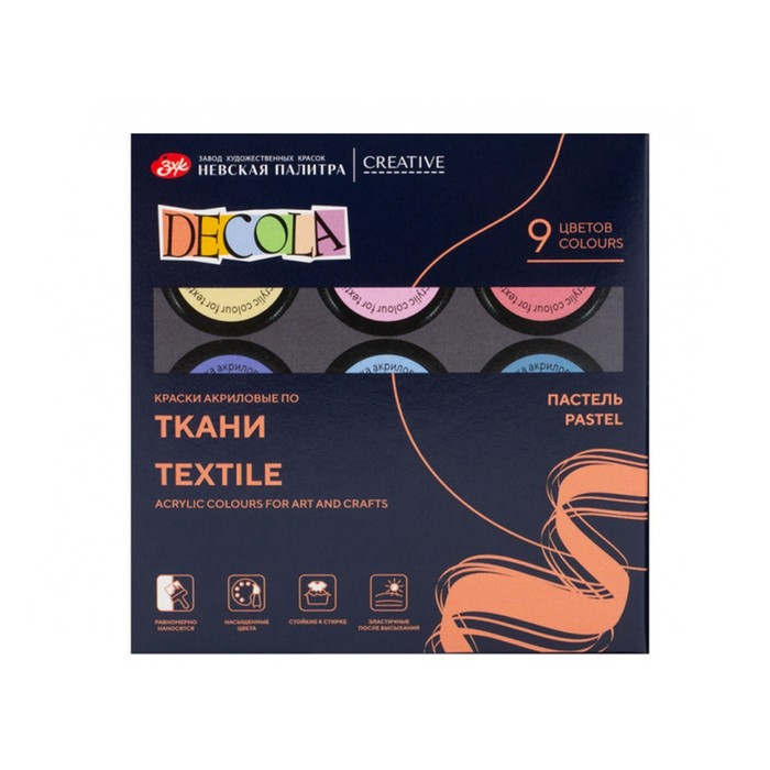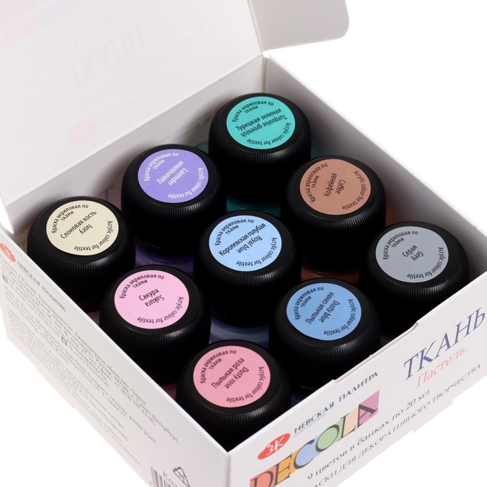 Краска по ткани, набор 9 цветов х 20 мл, ЗХК Decola, Pastel, Пастельные цвета, акриловая на водной основ, (41411885)